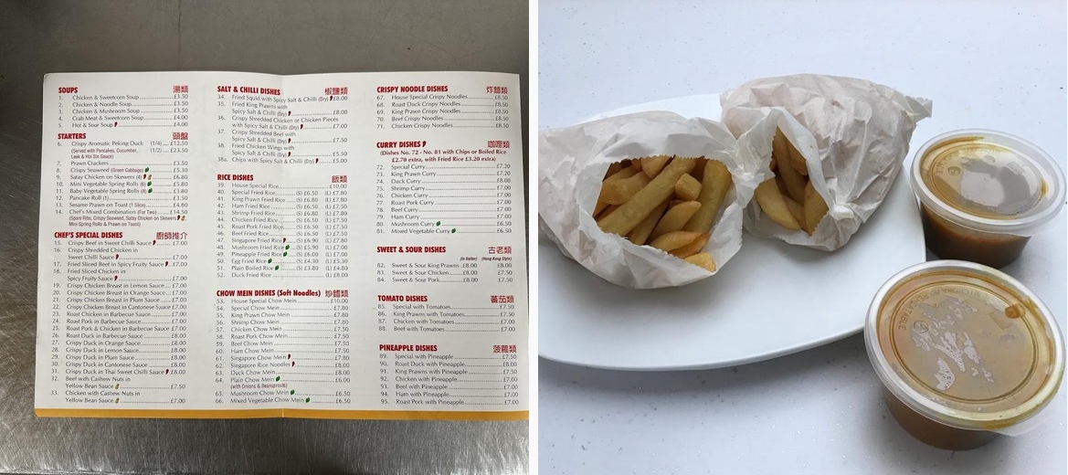 Lucky House specializes in Chinese cuisine, featuring a wide range of dishes including chow mein, curries, and various meat options. There's also a selection of English dishes like fish and chips.